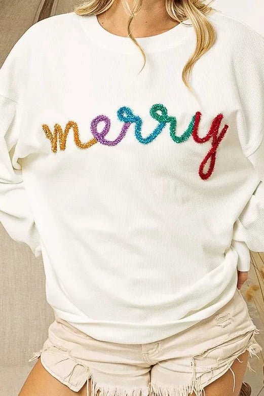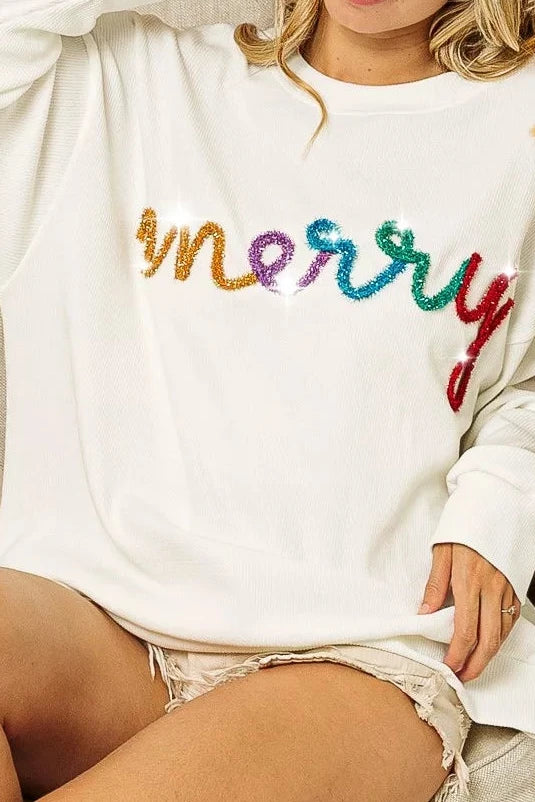 Merry Tinsel Lettering Drop Shoulder Sweatshirt
