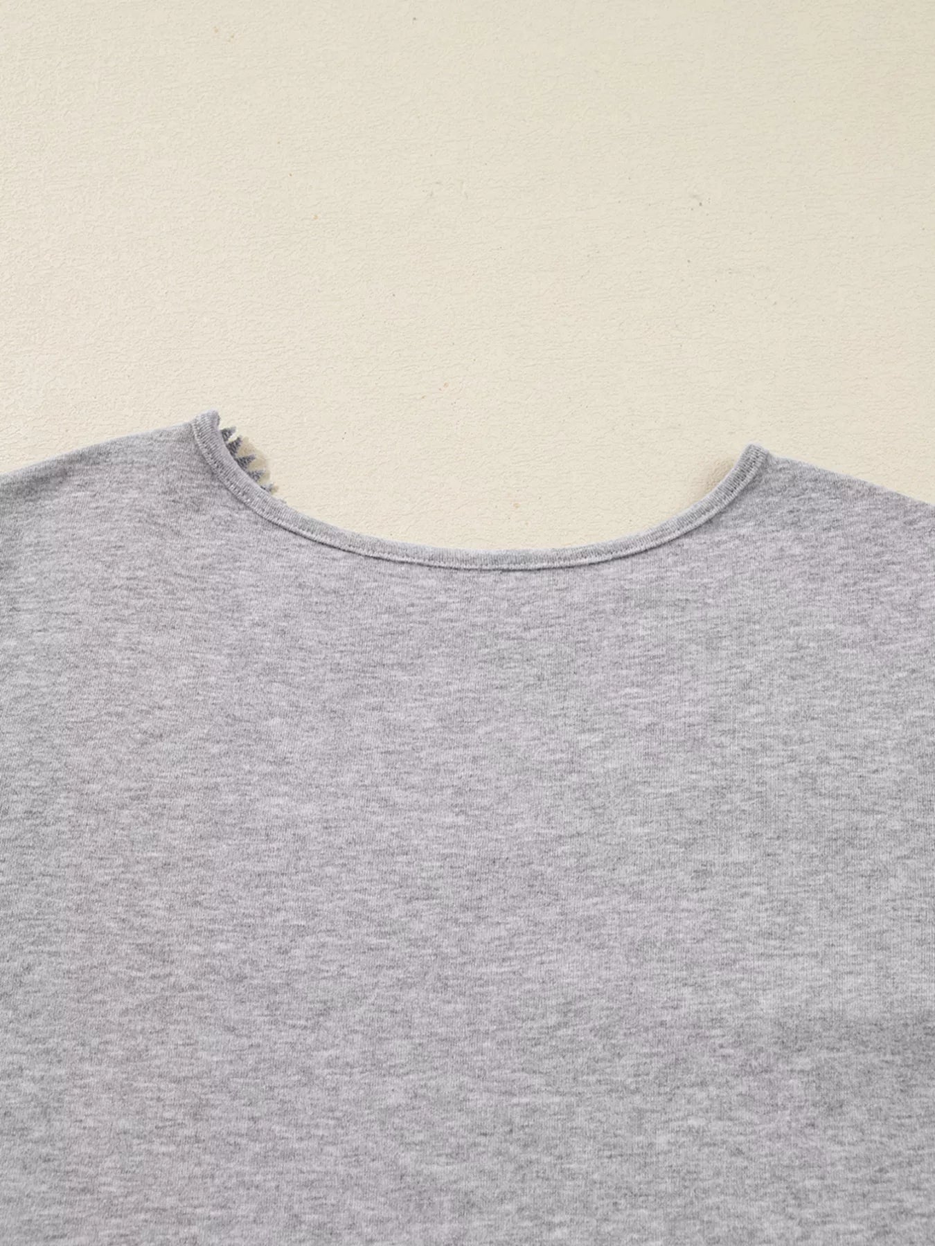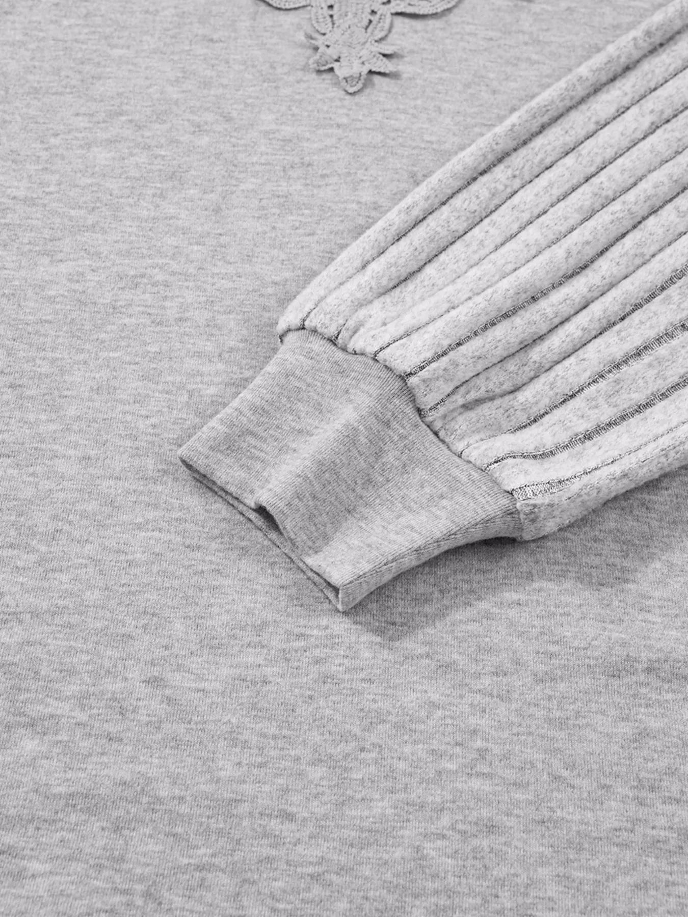 Bailey Hollowed Lace Ribbed Knit Long Sleeve Patchwork Top