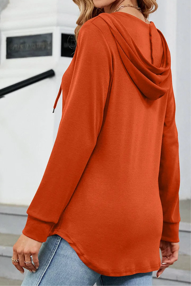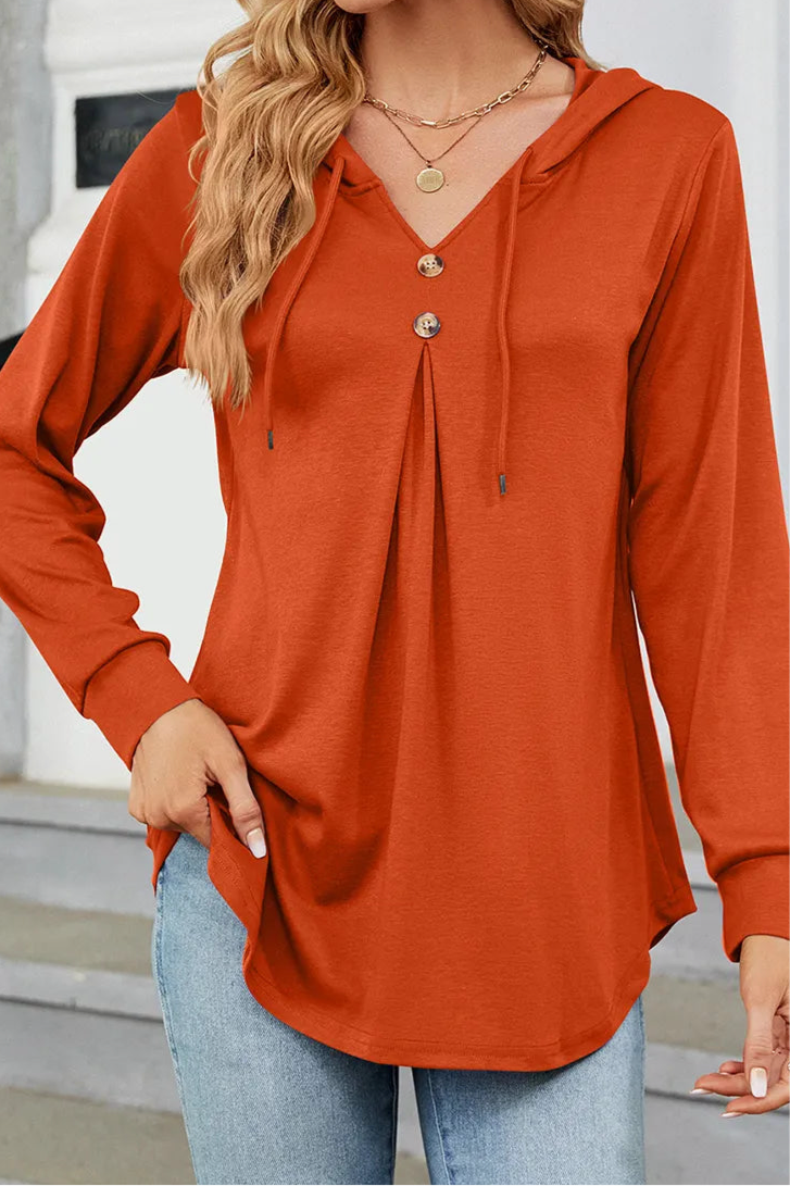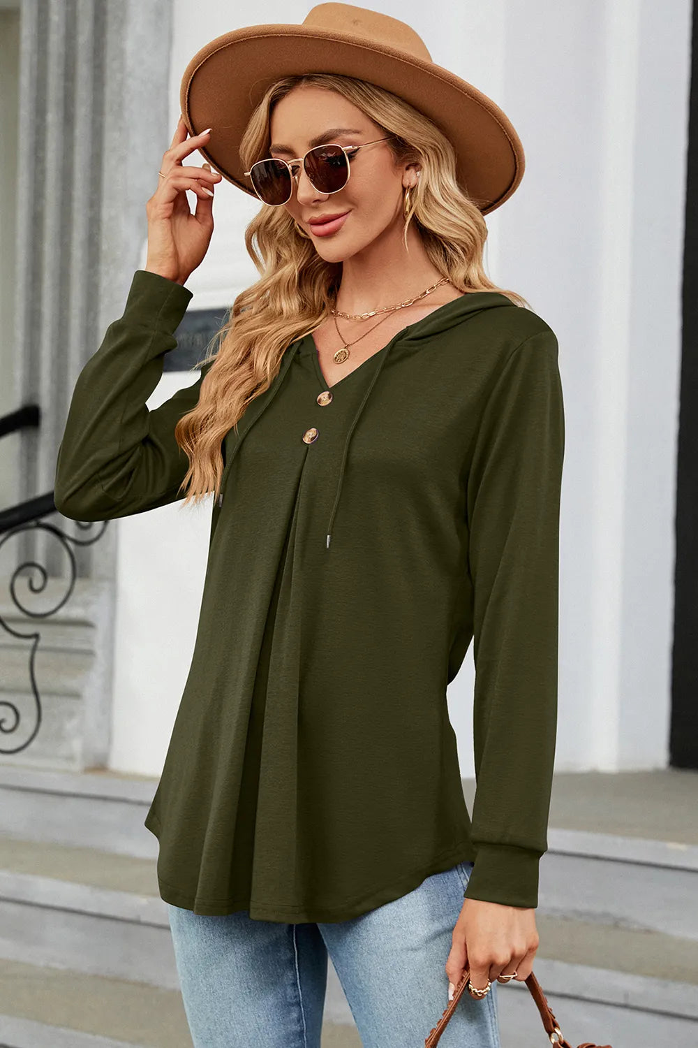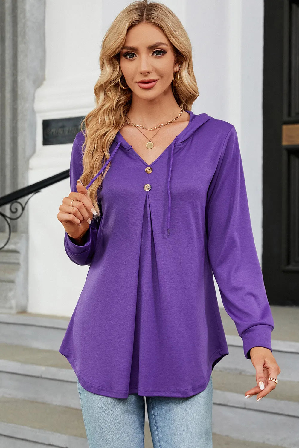 Add some personality to your wardrobe with our Chelsea Decorative Button Drawstring Long Sleeve Hoodie. Featuring one-of-a-kind decorative buttons and a drawstring hood, this hoodie is a playful and unique addition to any outfit. Stay cozy and stylish with this quirky piece.