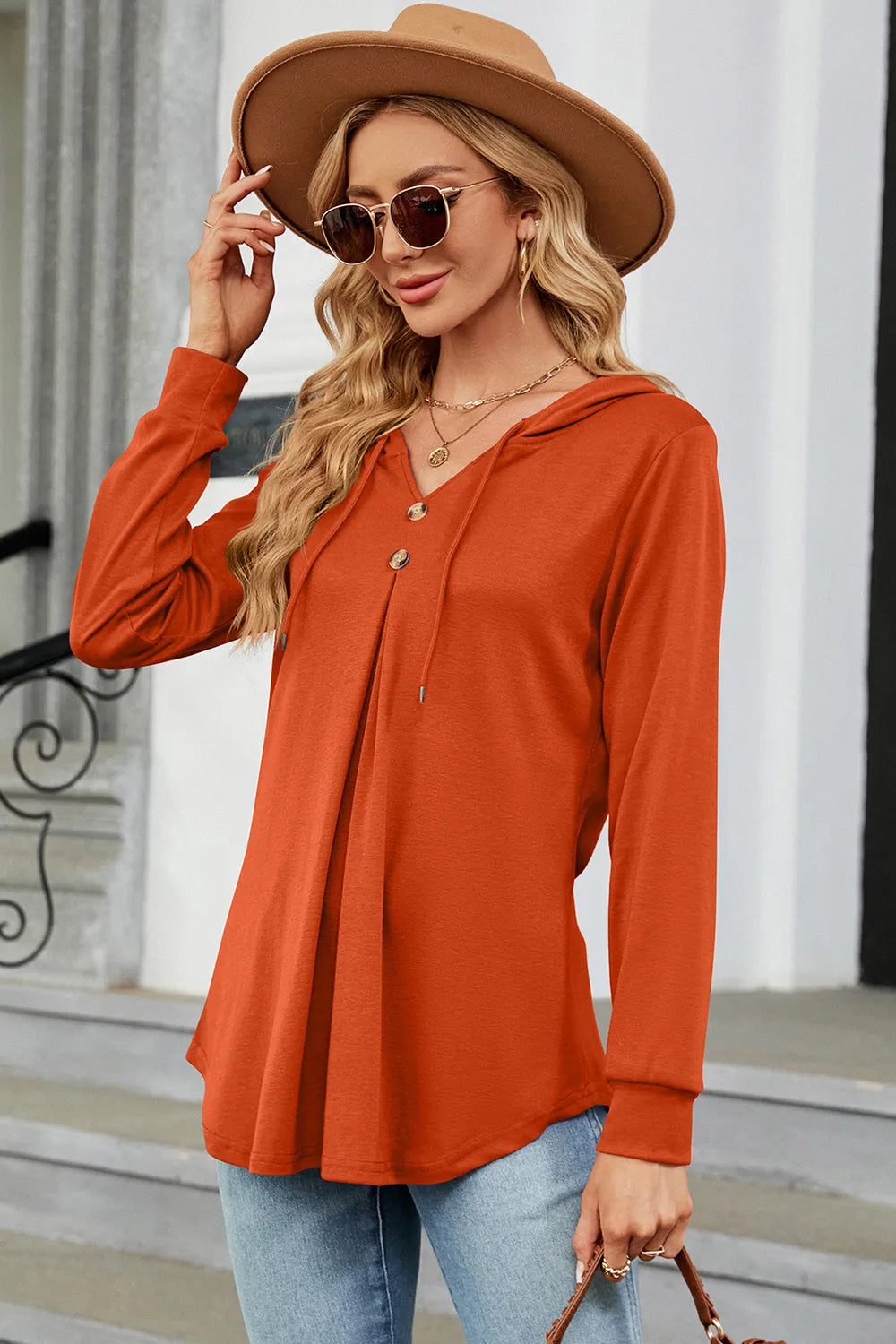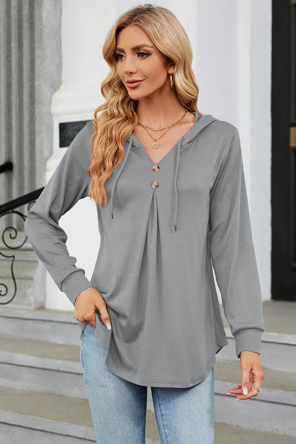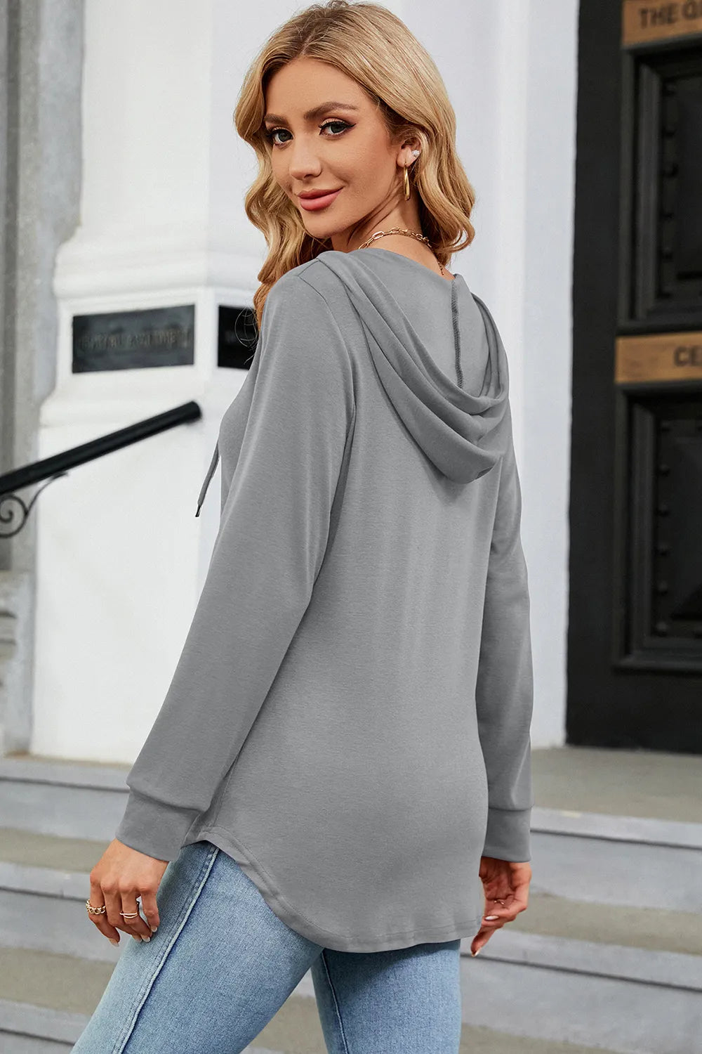 Add some personality to your wardrobe with our Chelsea Decorative Button Drawstring Long Sleeve Hoodie. Featuring one-of-a-kind decorative buttons and a drawstring hood, this hoodie is a playful and unique addition to any outfit. Stay cozy and stylish with this quirky piece.