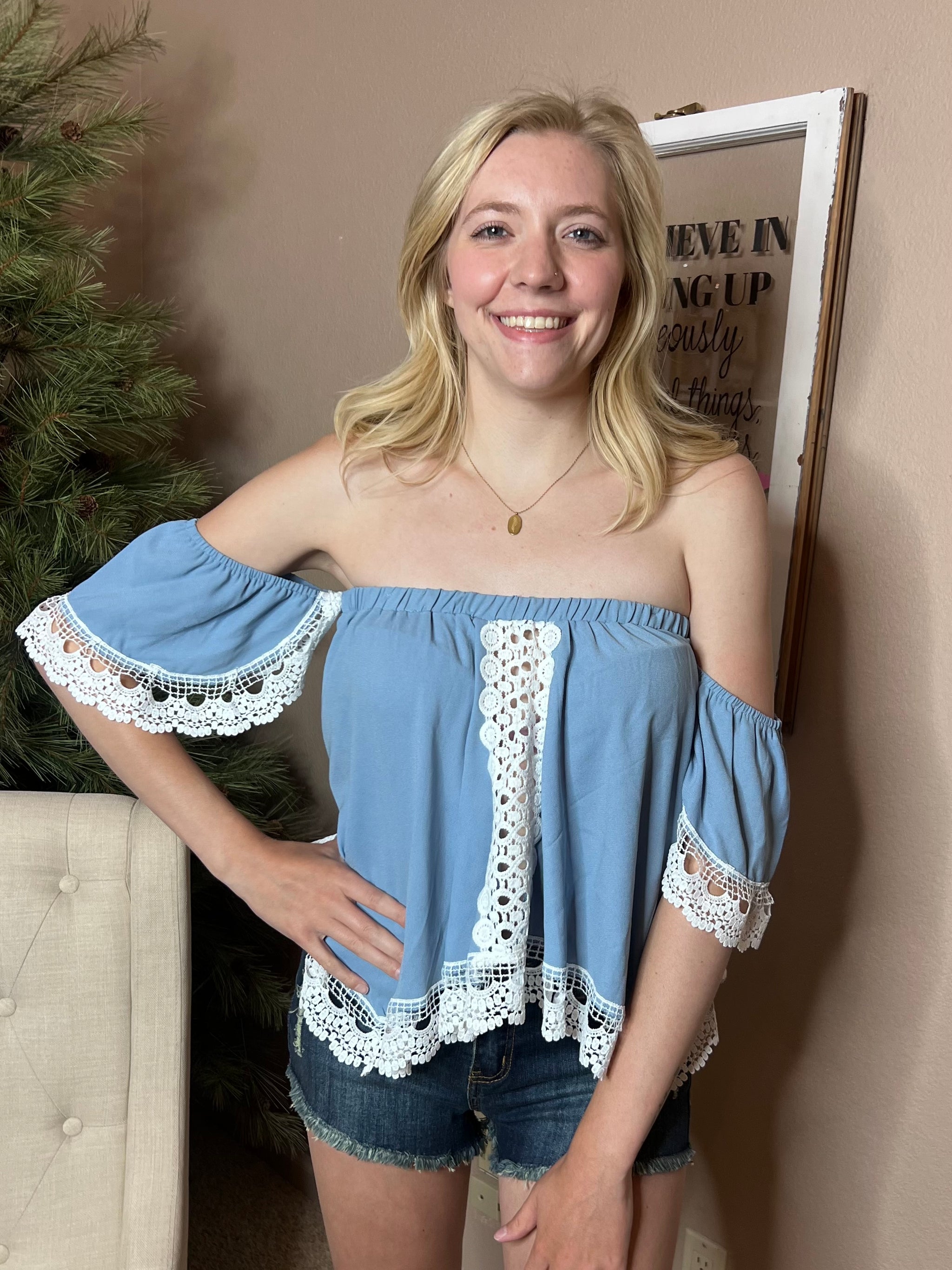 Embrace your bohemian side with the Mi & Lu Kelsey top in a playful blue and white print. Stay cool and stylish with this breezy top that's perfect for any occasion. Express your unique style with this cute and fun addition to your wardrobe.