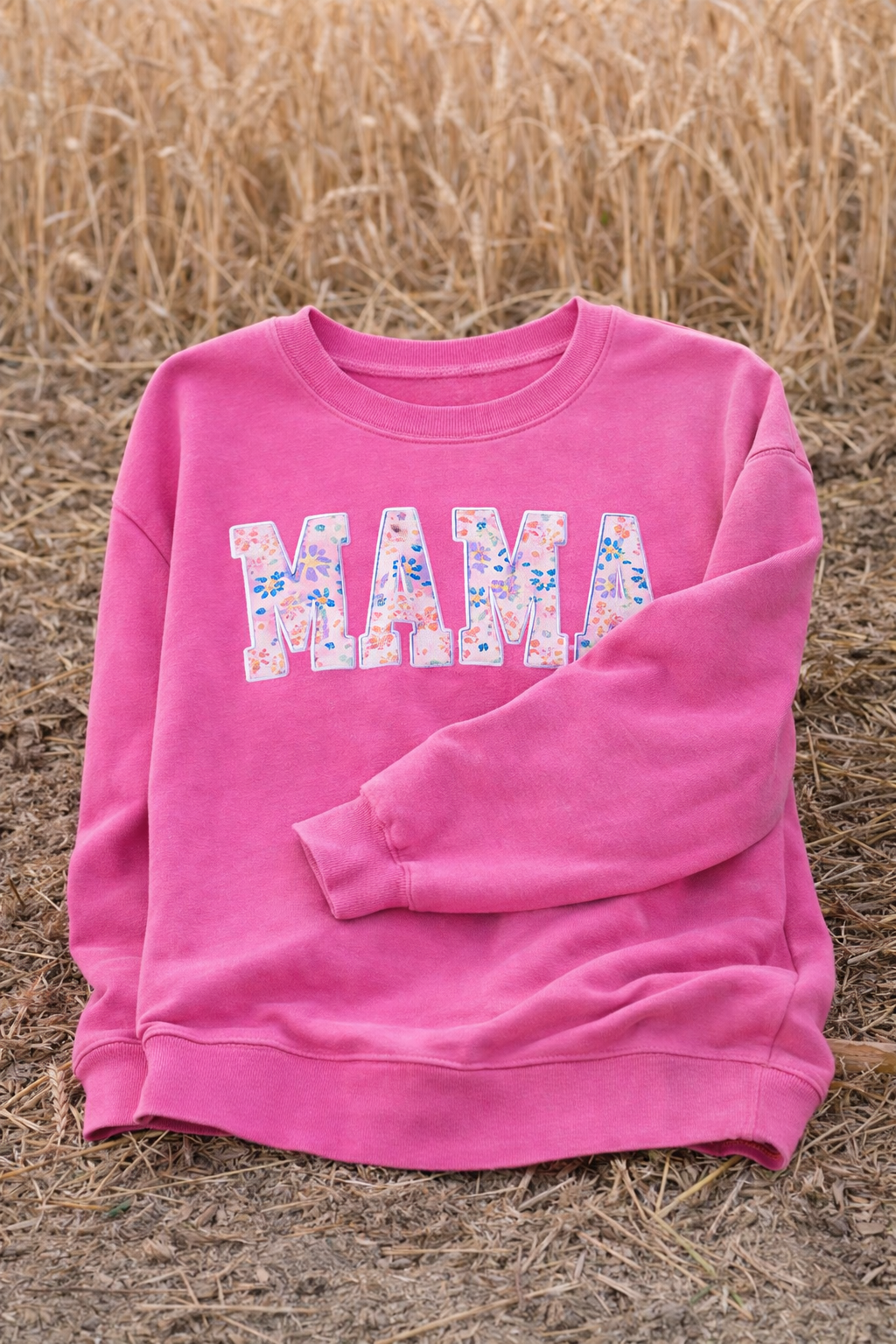 Celebrate motherhood in style with this charming pink pullover sweatshirt featuring delicate floral MAMA embroidery. Crafted with a relaxed fit, it's designed for all-day comfort whether you're running errands or relaxing at home