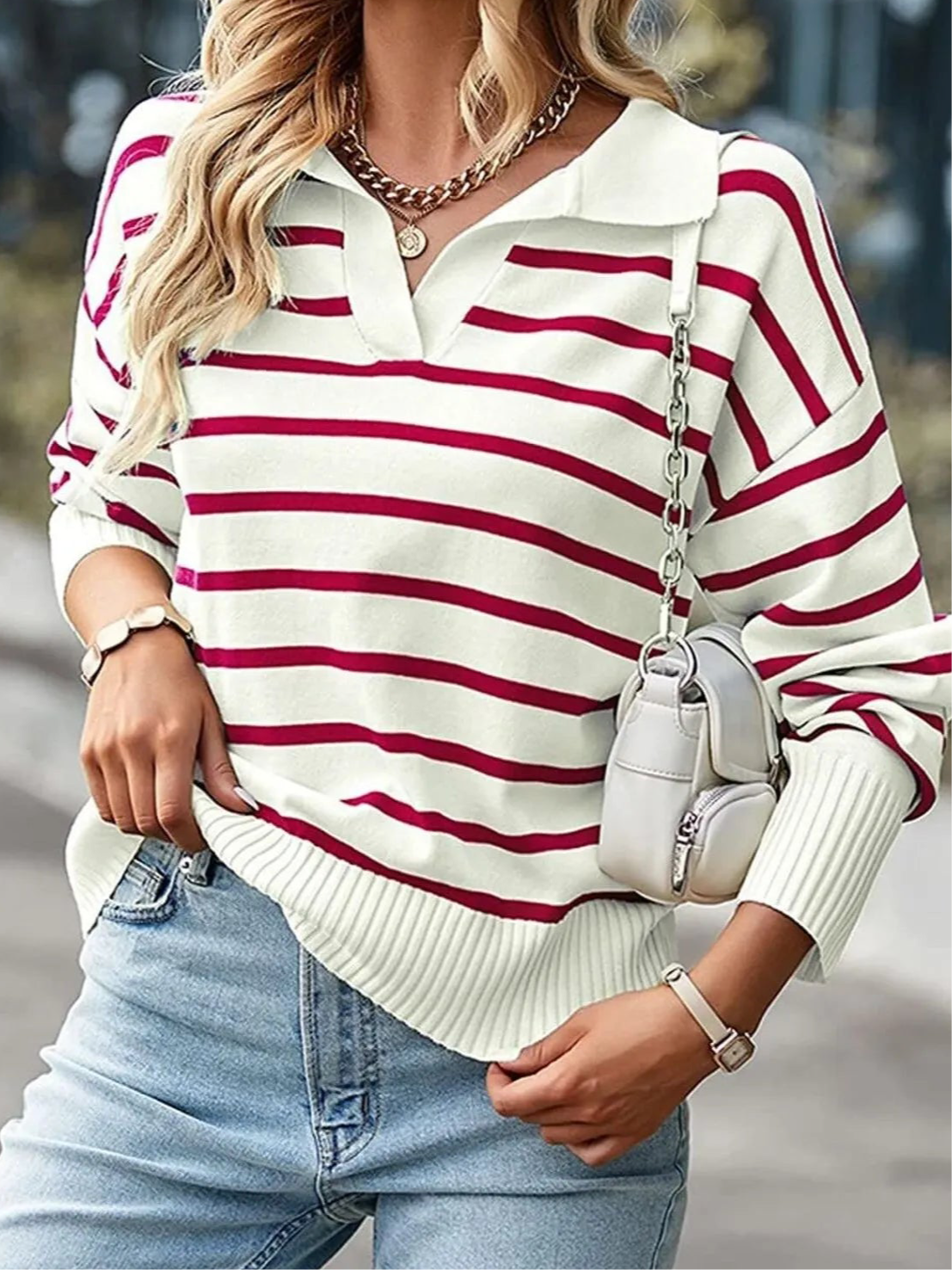Indulge in luxury with the Sophie Ribbed Hem Long Sleeve Striped Sweater. Crafted with ribbed detailing and long sleeves, this sweater exudes sophistication. The striped pattern adds a touch of elegance to any outfit. Elevate your style and stay cozy with this must-have piece.