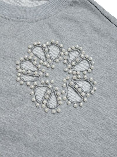 Add a touch of uniqueness to your wardrobe with our Trisha Cutout Pearl Round Neck Long Sleeve Sweatshirt. Featuring a playful cutout design and adorned with pearls, this sweatshirt will elevate any outfit with a fun and quirky twist. Perfect for those who want to stand out and have a good time!
